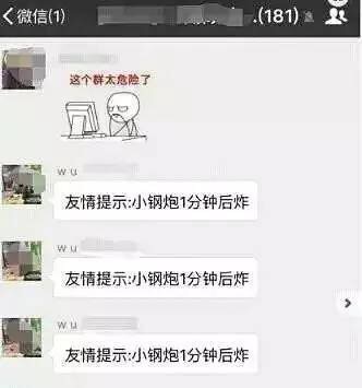 不少商家在网上叫卖“微信炸弹”。网上发布小广告,把有意要炸群的卖家拉进微信群,只要几十元就可以让一个群炸瘫痪。连续轰炸半小时,相信不少人都会选择退群。