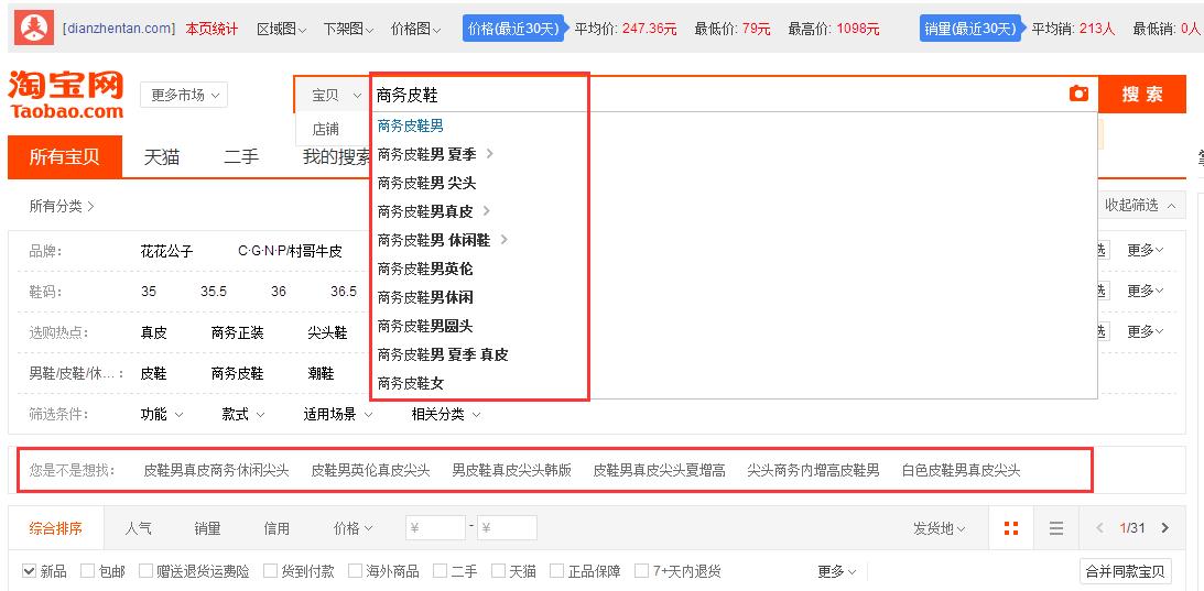 商务皮鞋男英伦真皮的时候,相对应的标题1和标题2,在销量和上下架时间都相差无几的情况下,标题1的产品排在标题2的前面的几率就会大很多。