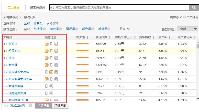 关键词相关性:关键词的相关性,简单来说就是跟我的产品属性的相关性,我们都知道淘宝的搜索系统是非常牛逼的,当买家搜索关键词的时候回对应推荐出与关键词相关度非常高的产品,很多人在优化产品标题的时候,看到淘宝下啦框推荐的属性词非常多,想想凑个字数就全部加进去了,但是实际上这其中有很多的关键词是非常不合适的!,这个时候其实我们可以将这个属性词直接放在淘宝搜索框去搜索,然后去对比展现出来的产品风格跟咱们的产品风格等是否一致,如果不一致那么就说明这个关键词是不合适的,这个时候那么这个关键词就可以摒弃掉了。通过这种方式我们其实可以确定自己店铺的产品核心词,然后在此核心词的基础上去做延伸,这样就更好了。